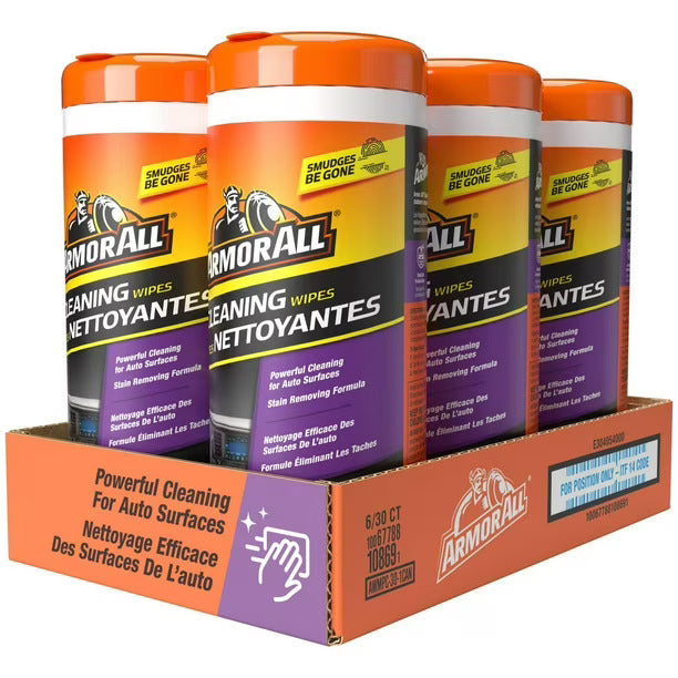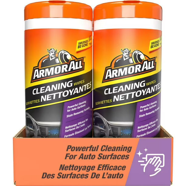Your car's delicate surfaces are too important to trust to a household cleaner. Get that natural "just detailed" look from Armor All Cleaning Wipes. Meticulously engineered for your car's special needs, these convenient wipes lift away dirt and debris, revealing your car's rich, natural beauty without harming delicate surfaces. Great for your car's dash, vinyl, fabric, carpet, consoles, leather and more. Lint-free disposable Cleaning Wipes won't leave a greasy residue on your hands. Features a Moisture Lock Lid which guarantees wipes will not dry out for one year after purchase.